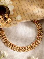 22K Gold-plated chocker necklace has red and green stone-studded details