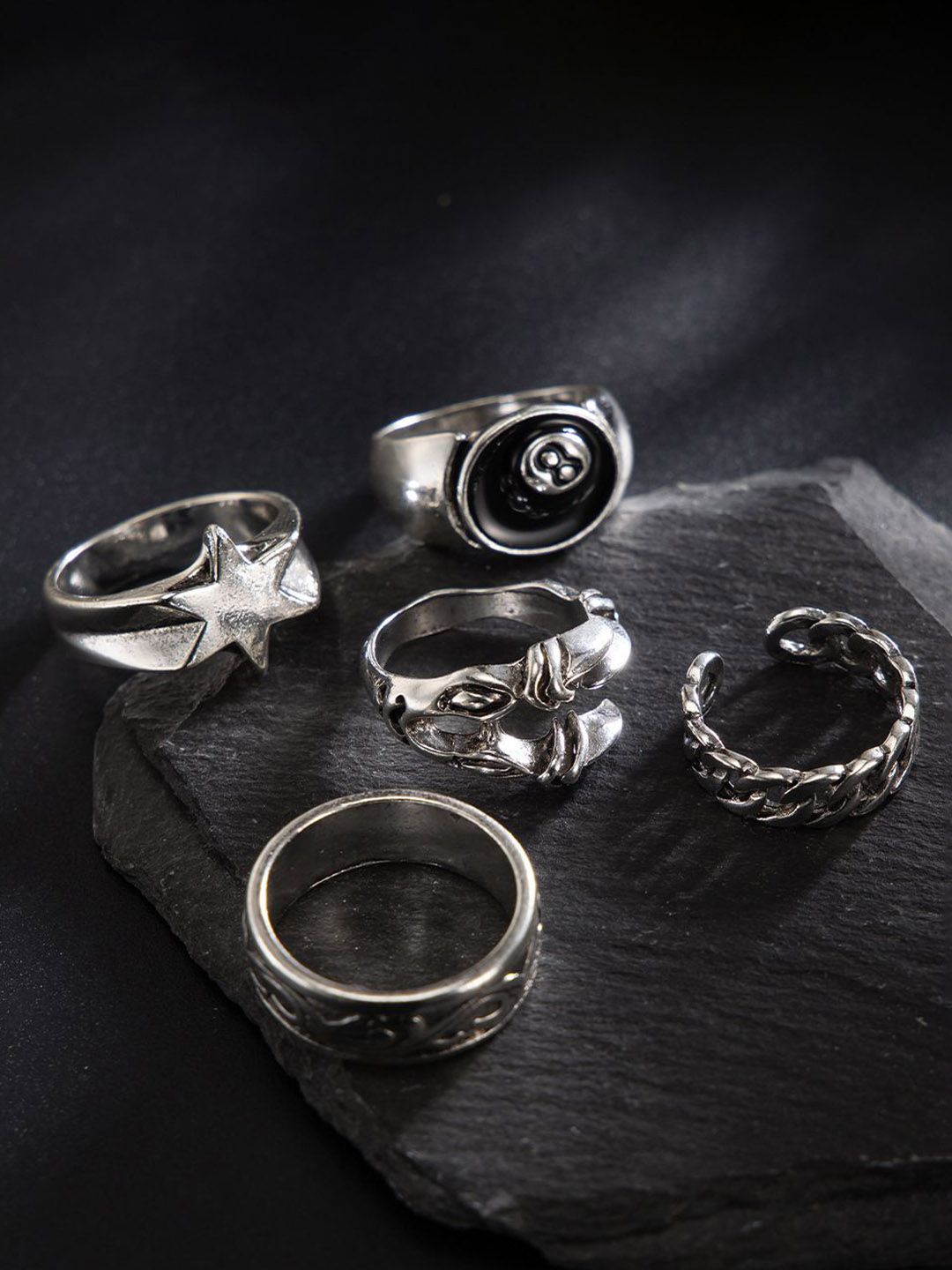 5Pc Silver Plated Finger Rings