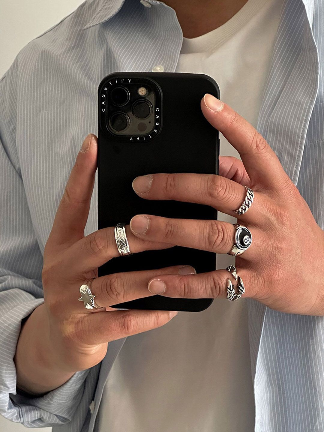 Set Of 5 sliver-plated adjustable finger ring, has texture and criss-cross shaped details