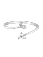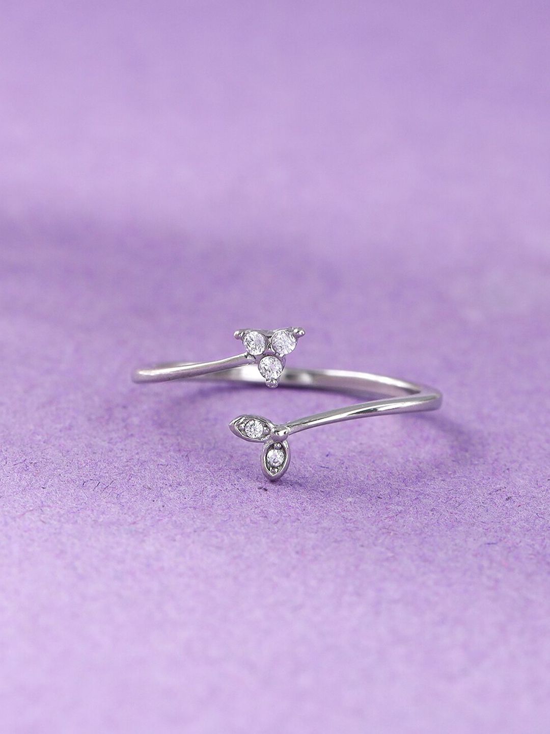 925 Sterling Silver Rhodium-plated adjustable finger ring, has white CZ -studded and Cion Shaped details