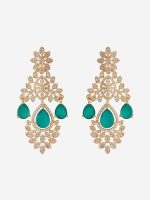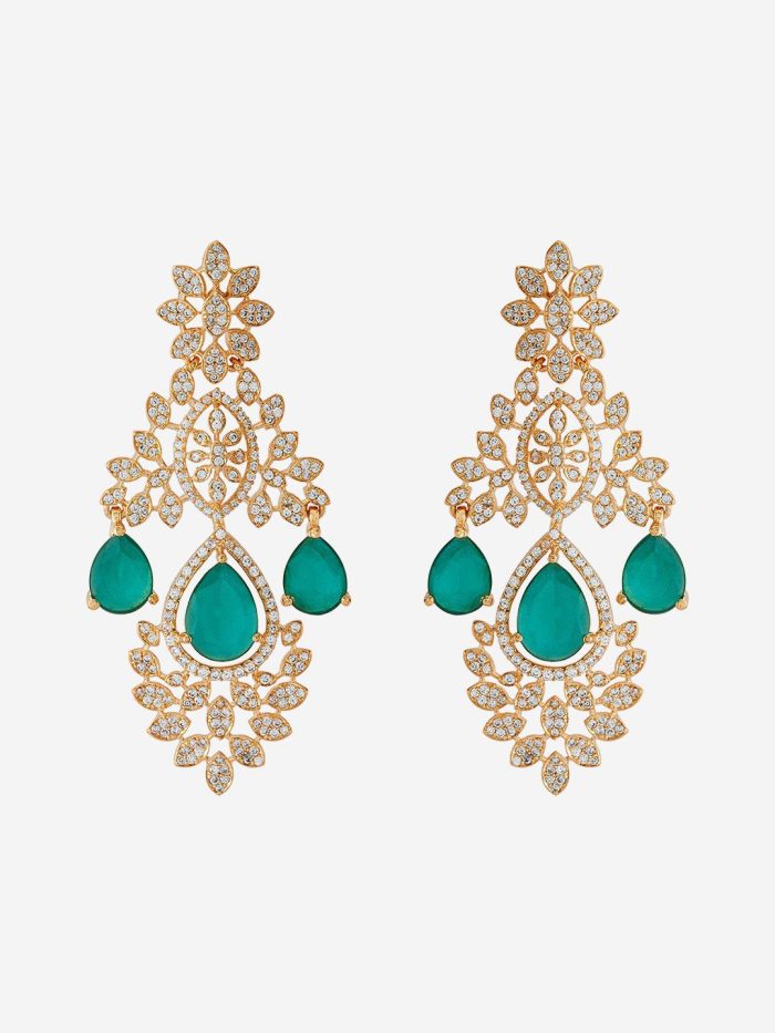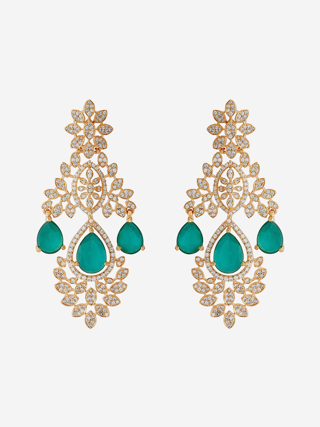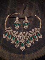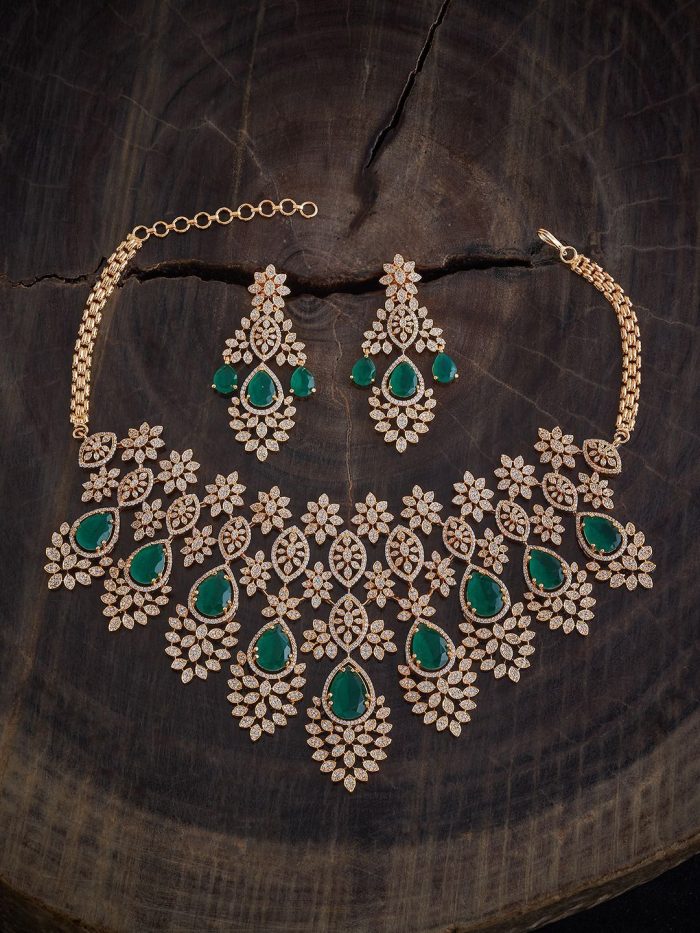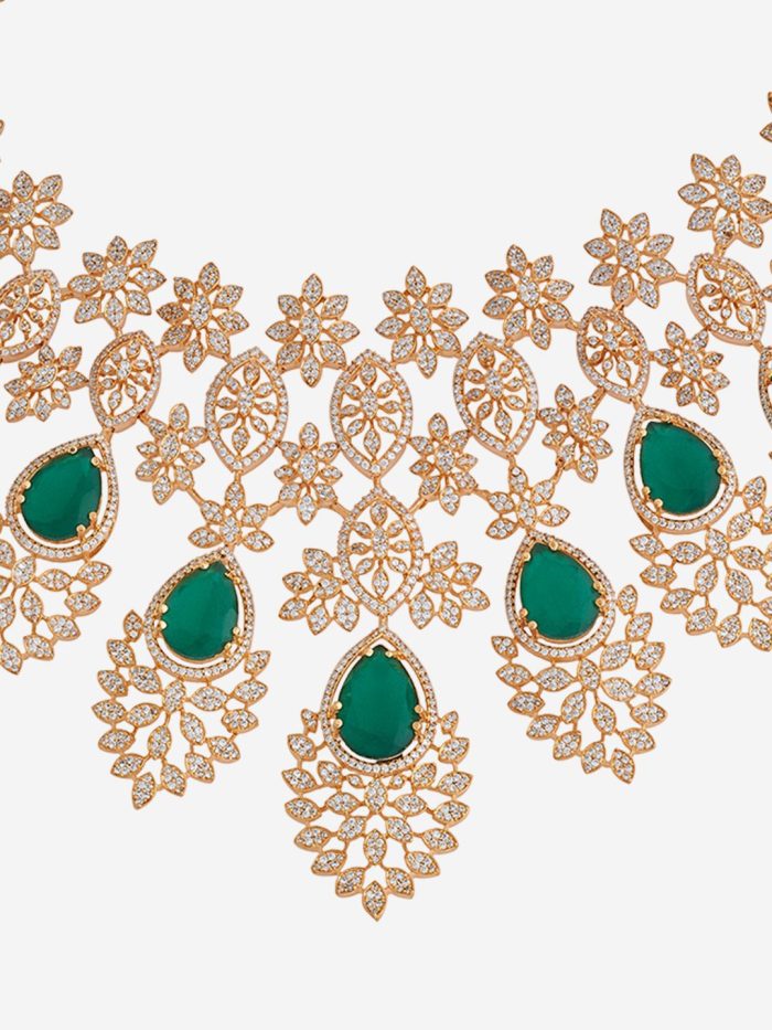 Gold-toned, Gold-plated necklace, has white CZ and green stones-studded details