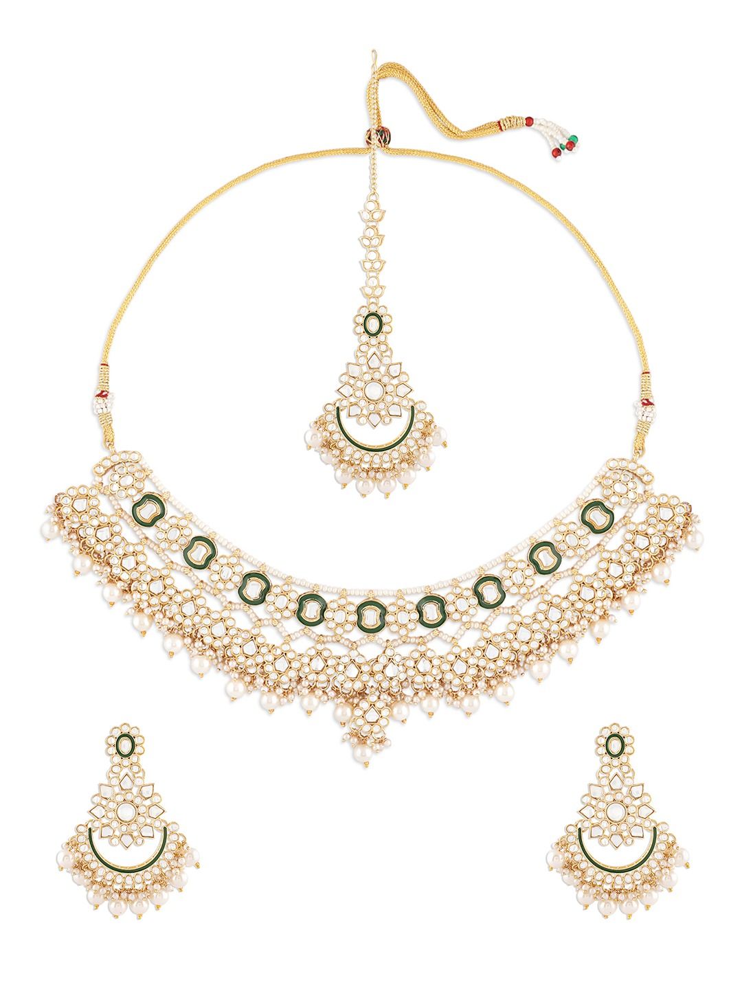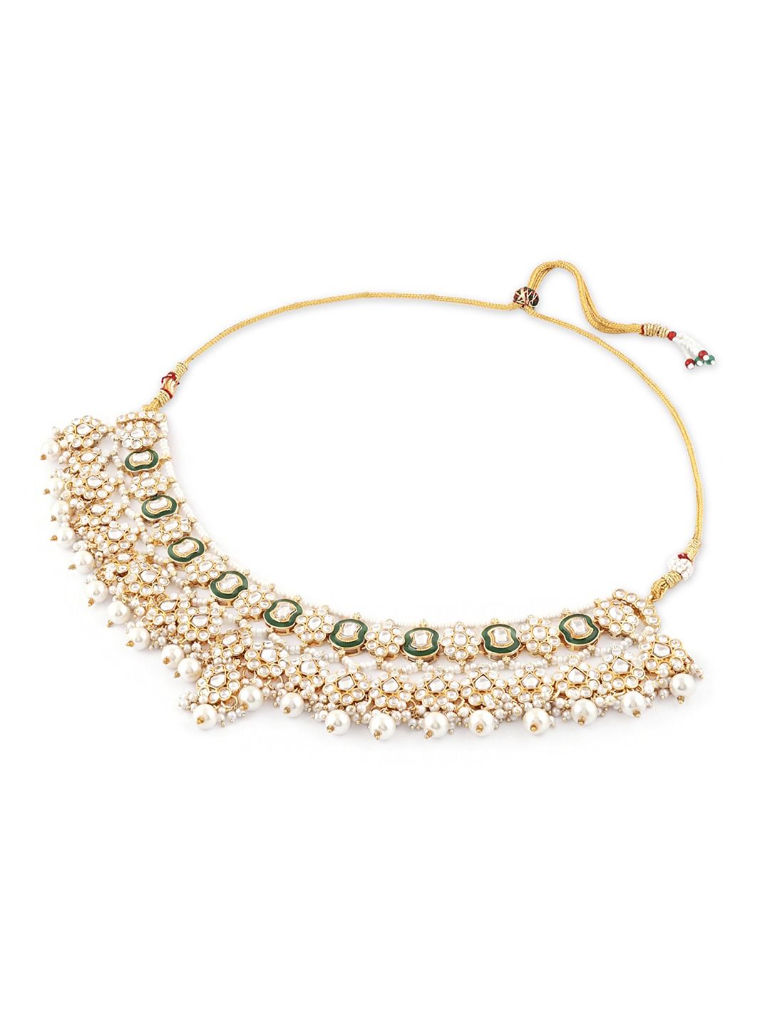 Gold-plated necklace, has Kundan stone-studded and details