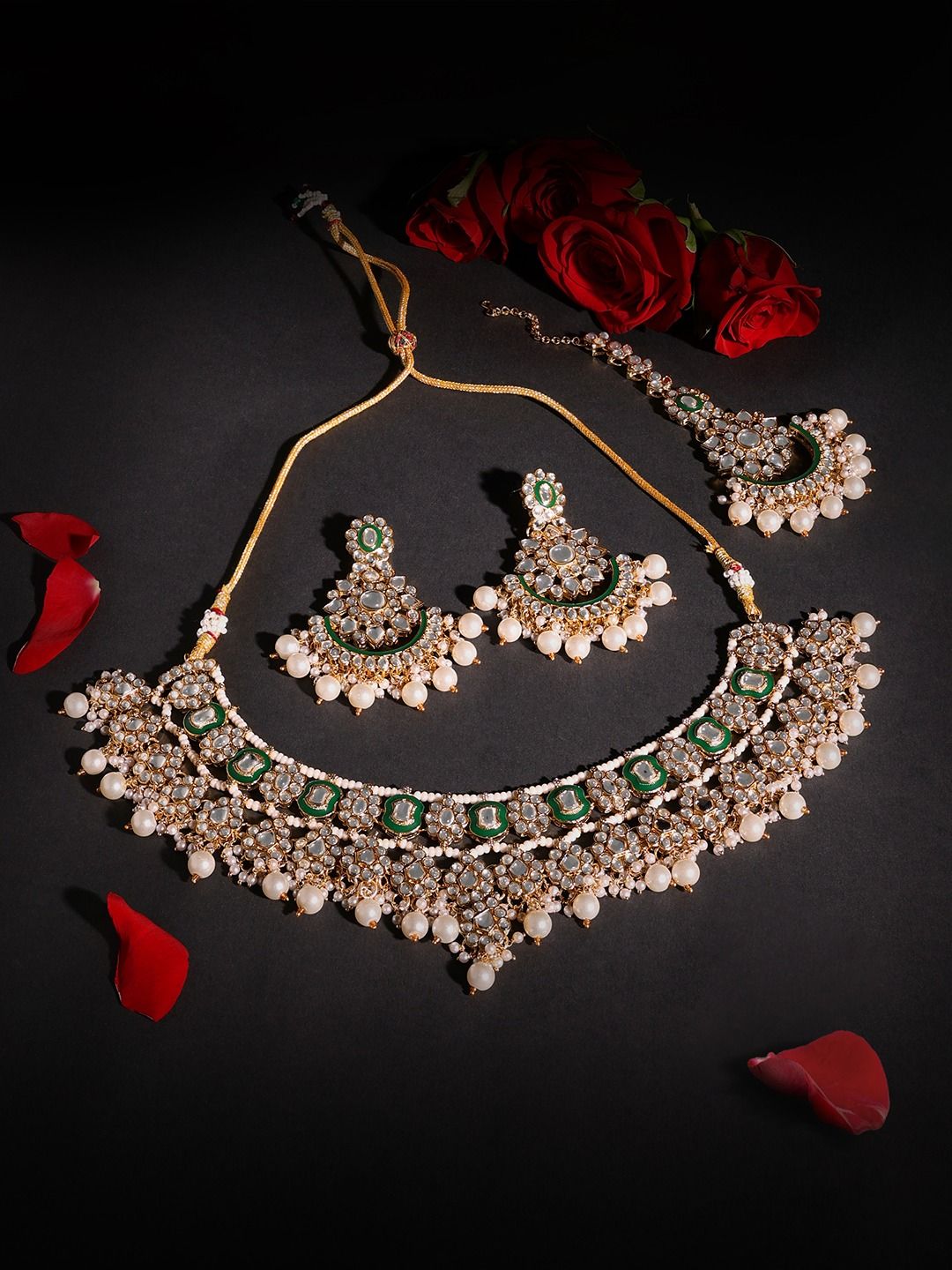 ₹310.00Rose Gold-Plated AD-Studded Jewellery Set