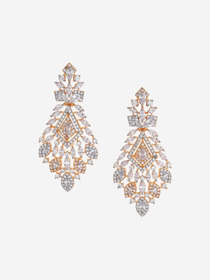 A pair of matching drop earrings, each secured with a post-and-back closure