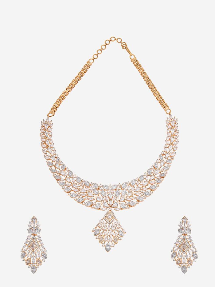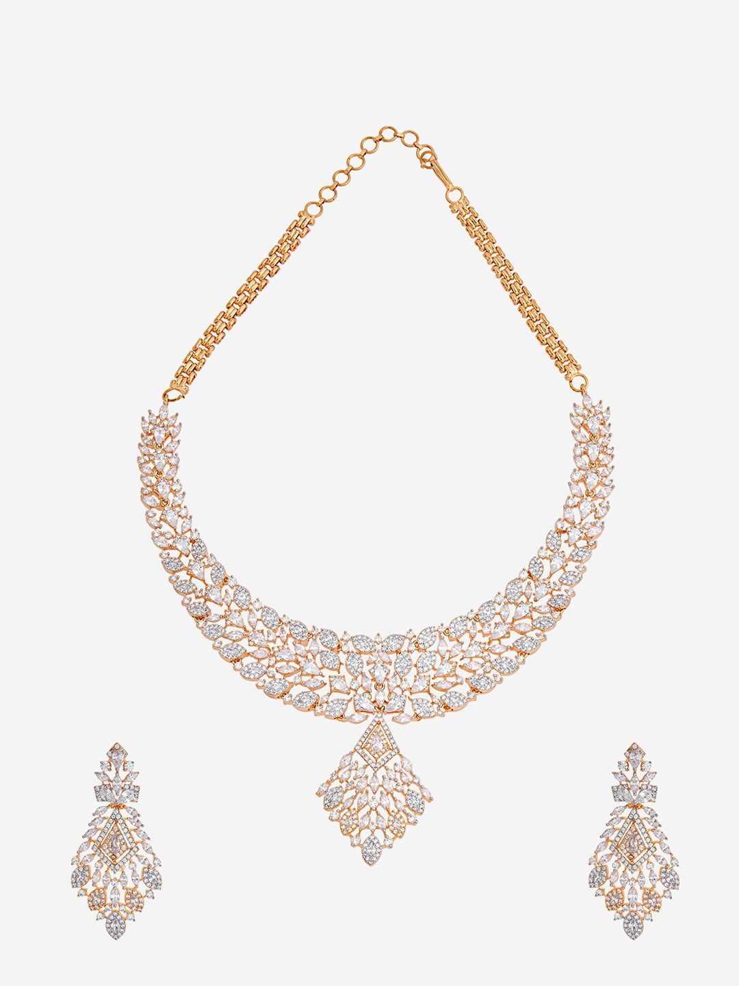Rhodium-plated gold-toned necklace, has white cz-studded details
