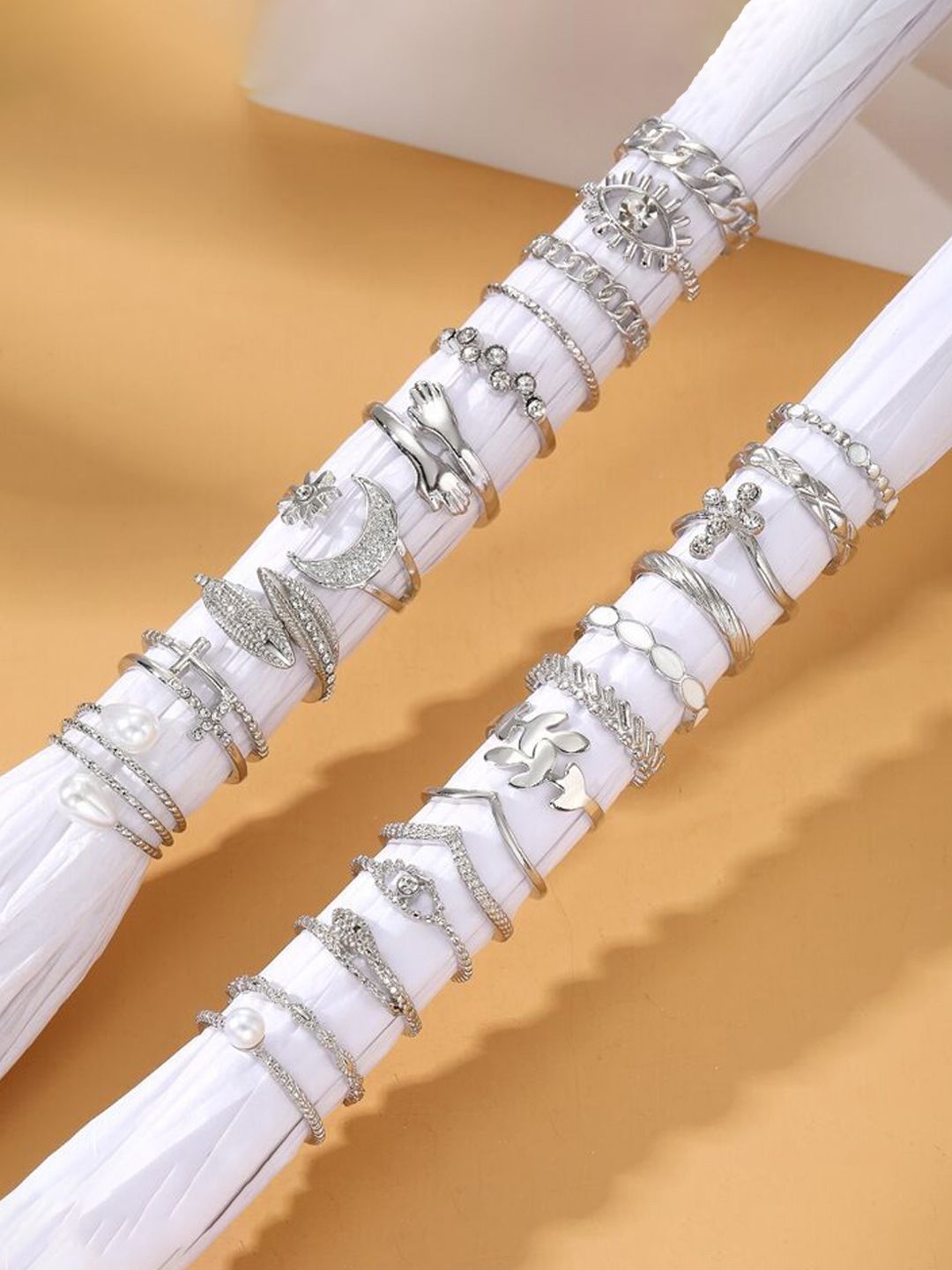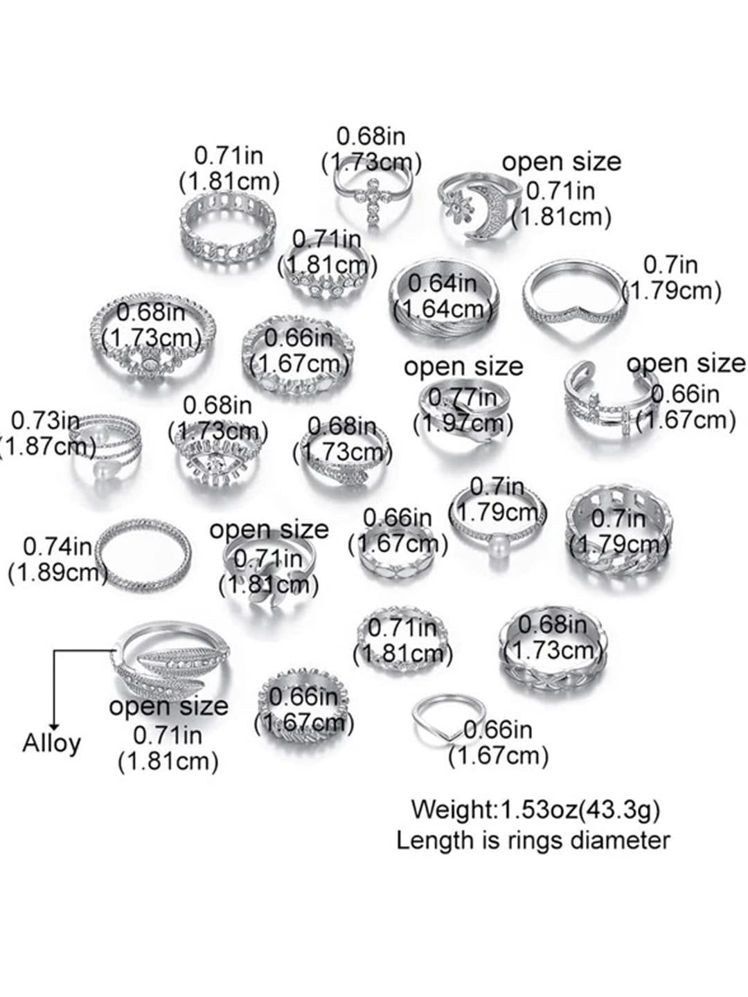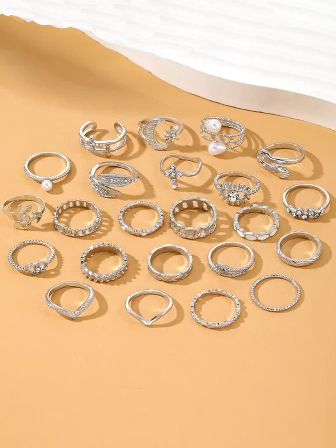 Set of 23 Silver-plated Stackable adjustable finger ring secured with slip on closure