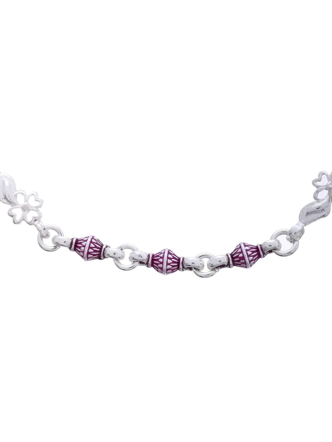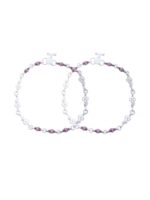 Set of 2 Silver-Plated Stainless Steel Anklets with Pink Artificial Beads