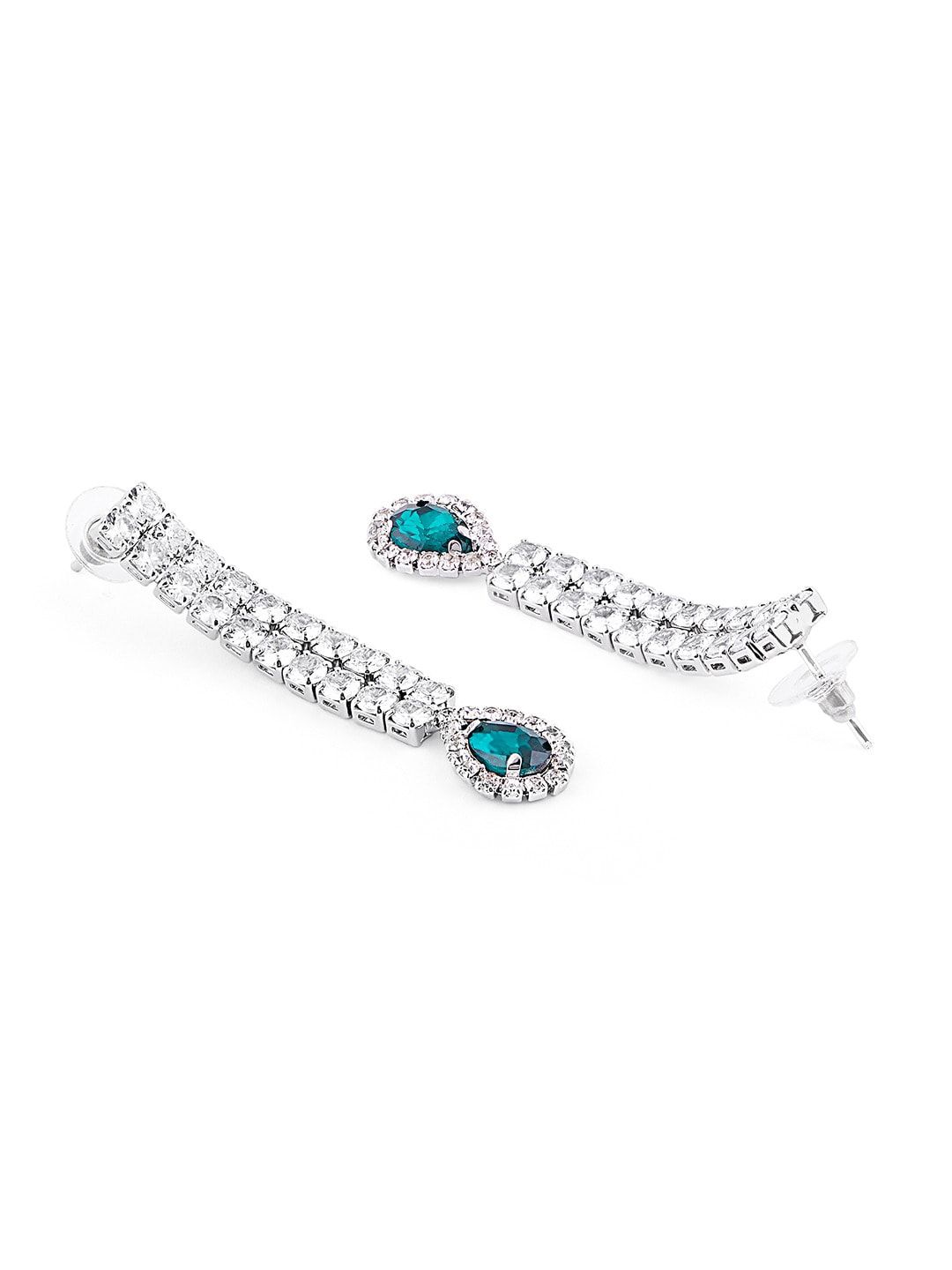 A pair of matching drop earrings, each secured with a post-and-back closure