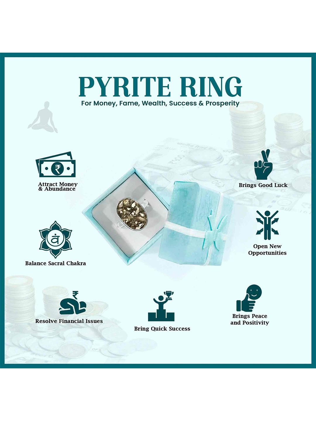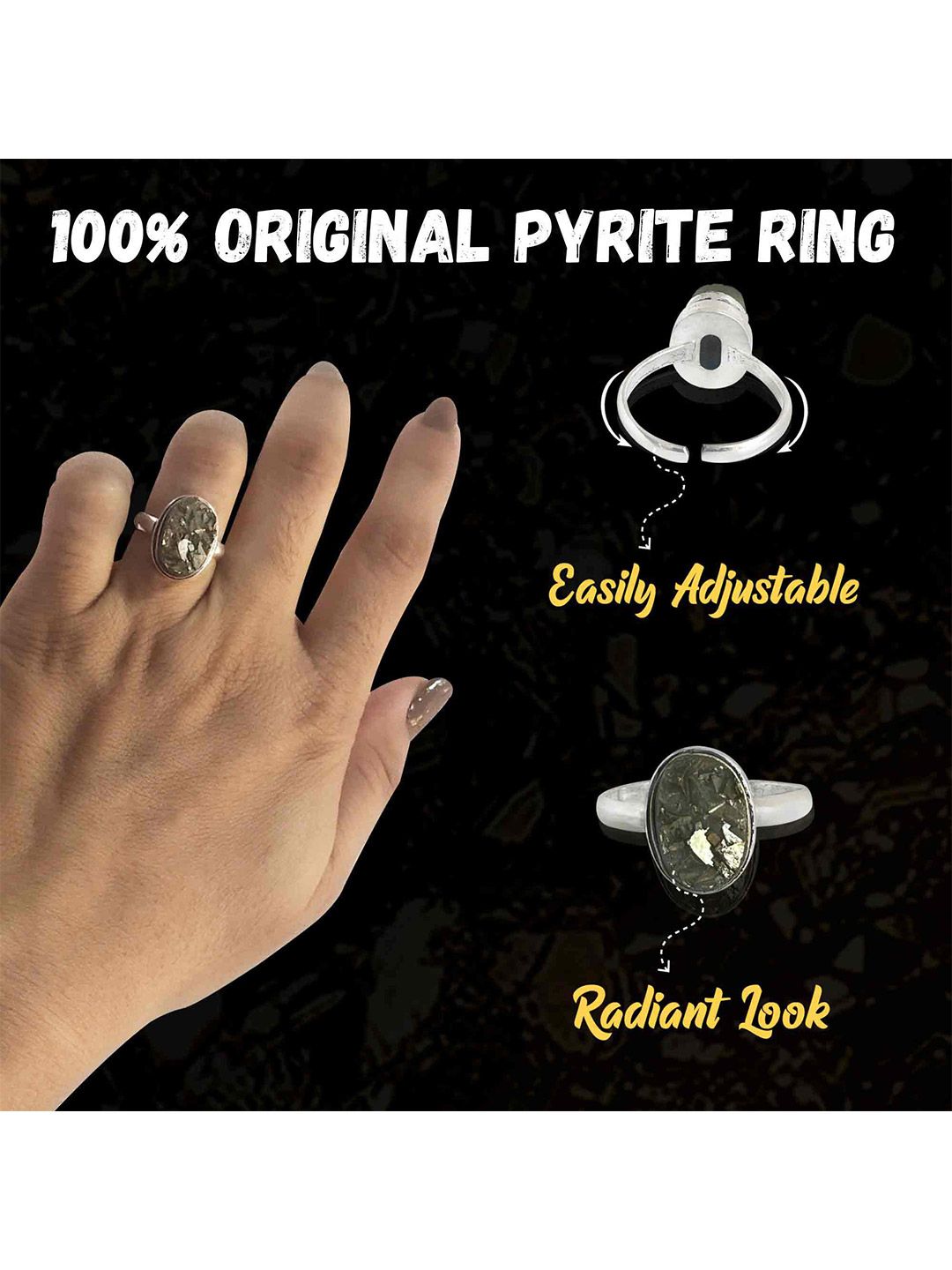 * 100% original certified Pyrite stone ring for males and females of all ages. * Pyrite stone ring and skin-safe metal, adjustable to fit anyone’s finger.* Pyrite for Men and Women is ideal for money, fame, and success.* Anyone of any Zodiac Sign, Rashi, or Nakshatra can wear the Pyrite Ring